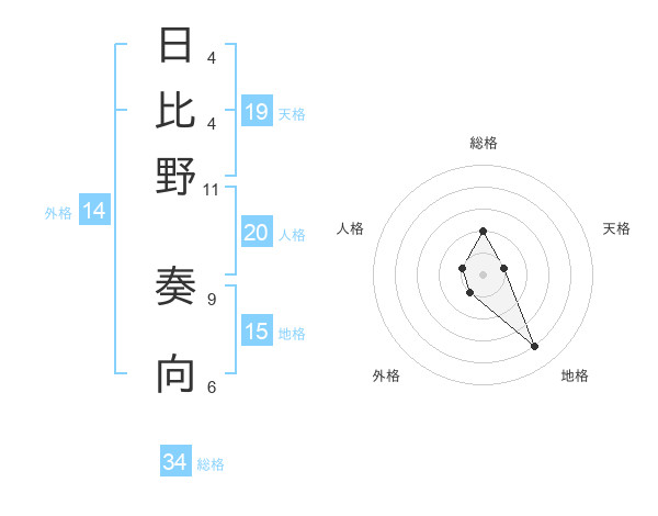 日比野 奏向さんを姓名の画数から五運を鑑定