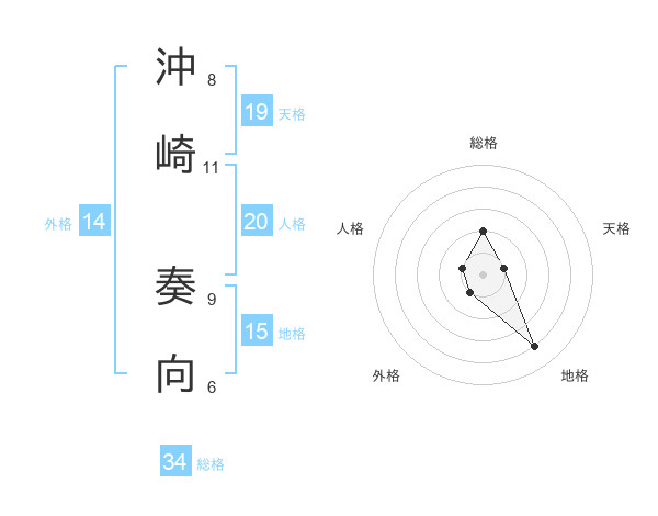 沖崎 奏向さんを姓名の画数から五運を鑑定