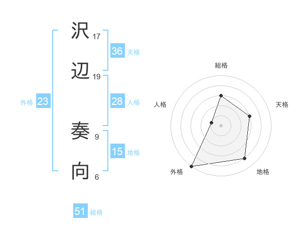 沢辺 奏向さんの総格は51画の3点!