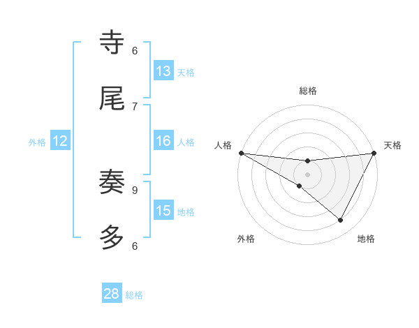 寺尾 奏多さんの天格は13画の5点!