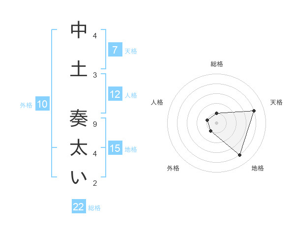 中土 奏太いさんを姓名の画数から五運を鑑定
