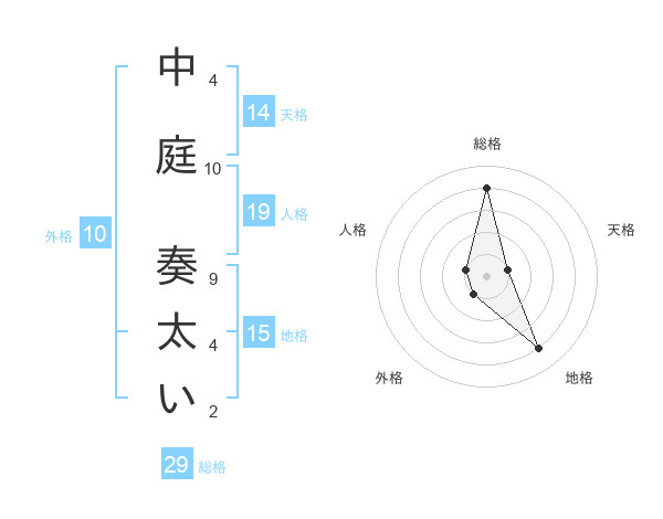 中庭 奏太いさんの総格は29画の4点!
