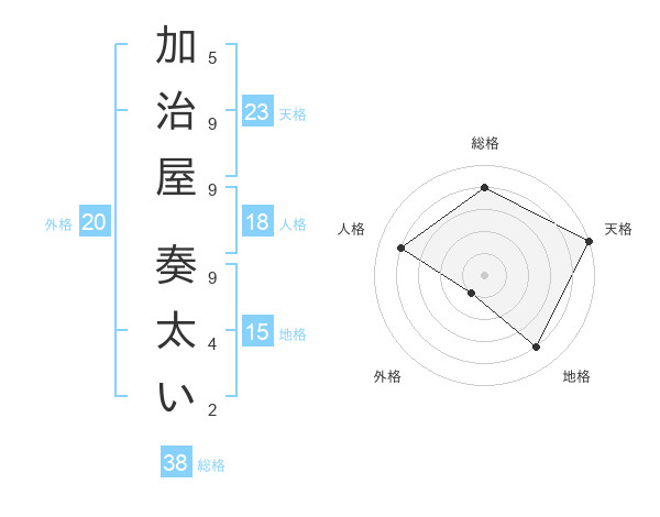 加治屋 奏太いさんを姓名の画数から五運を鑑定