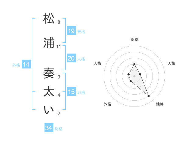 松浦 奏太いさんを姓名の画数から五運を鑑定