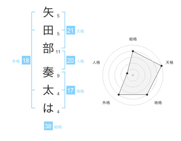 矢田部 奏太はさんを姓名の画数から五運を鑑定