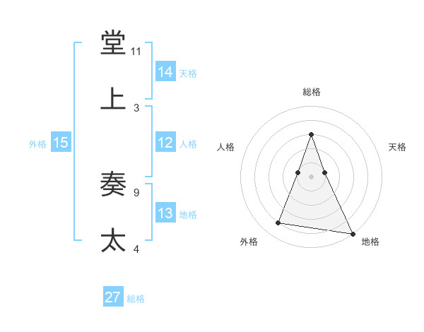堂上 奏太さんを姓名の画数から五運を鑑定