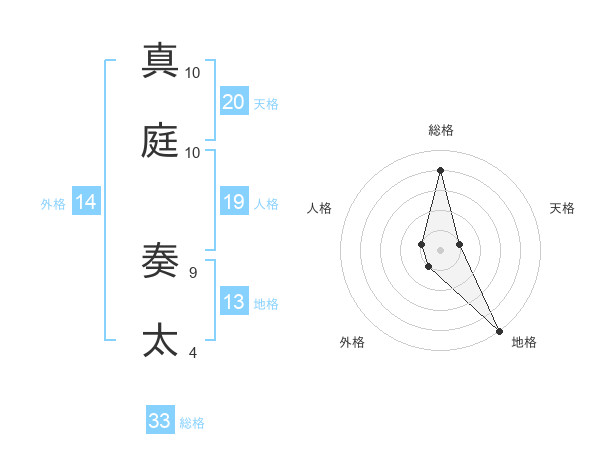 真庭 奏太さんを姓名の画数から五運を鑑定