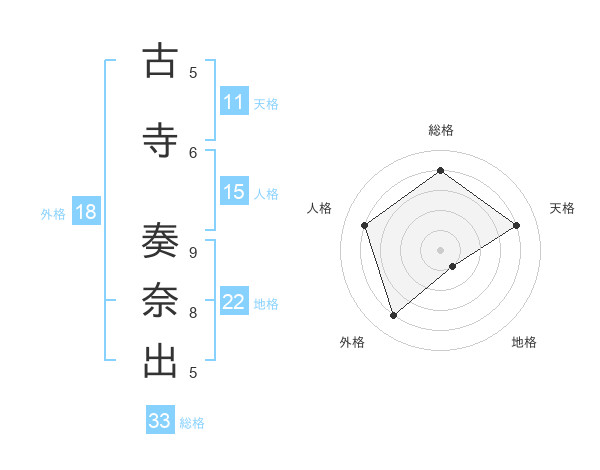 古寺 奏奈出さんを姓名の画数から五運を鑑定