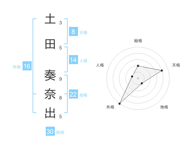 土田 奏奈出さんの天格は8画の4点