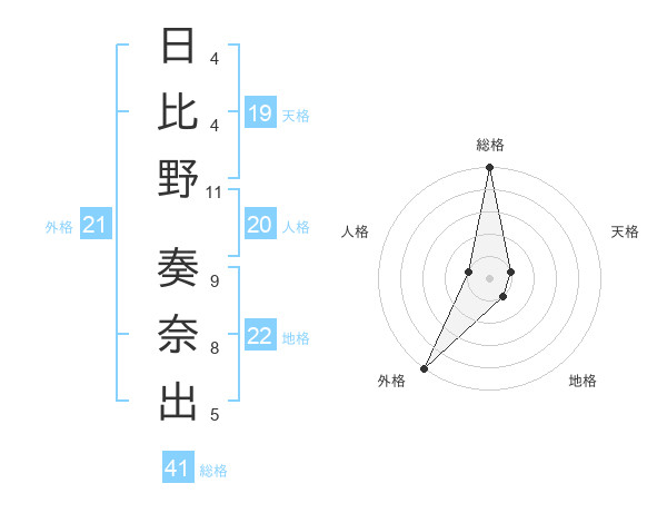 日比野 奏奈出さんを姓名の画数から五運を鑑定