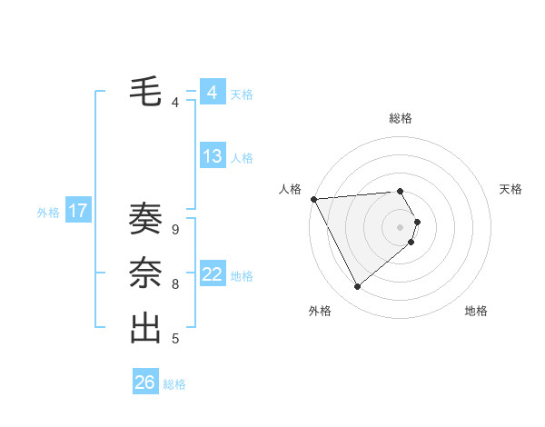 毛 奏奈出さんを姓名の画数から五運を鑑定