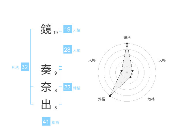 鏡 奏奈出さんの外格は32画の5点!