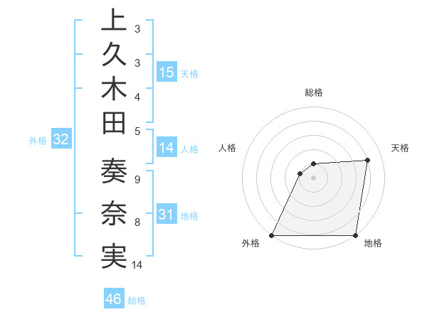 上久木田 奏奈実さんを姓名の画数から五運を鑑定