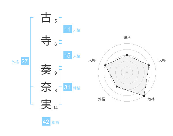 古寺 奏奈実さんを姓名の画数から五運を鑑定