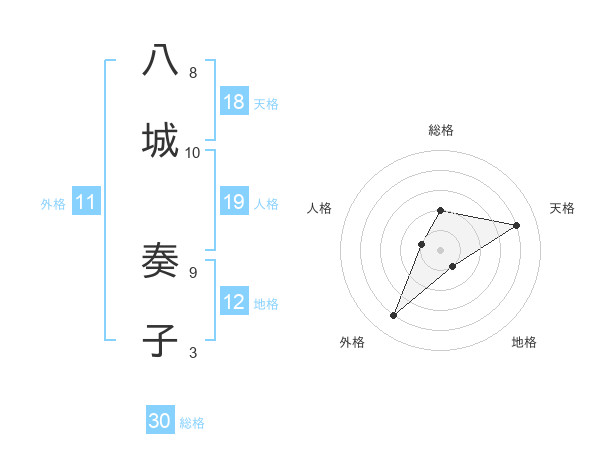 八城 奏子さんの天格は18画の4点!