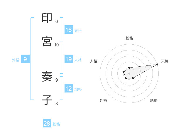 印宮 奏子さんの天格は16画の5点!