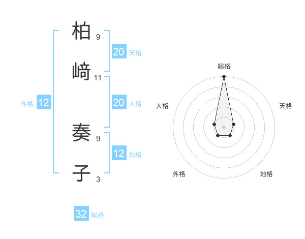 柏﨑 奏子さんを姓名の画数から五運を鑑定