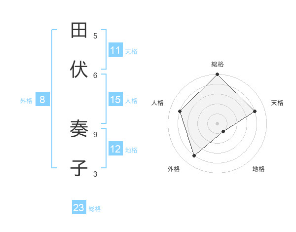 田伏 奏子さんを姓名の画数から五運を鑑定