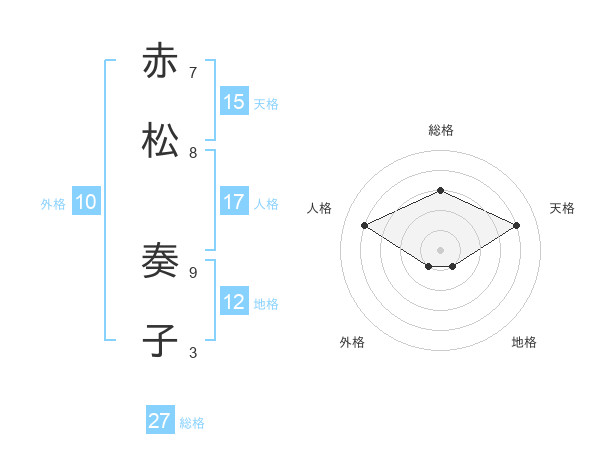 赤松 奏子さんを姓名の画数から五運を鑑定