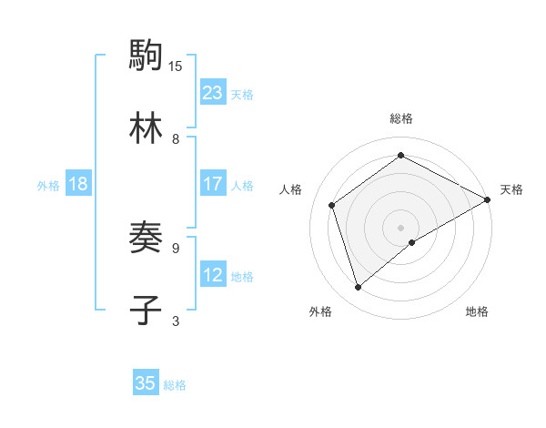 駒林 奏子さんを姓名の画数から五運を鑑定