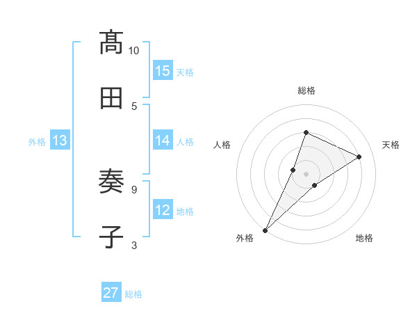髙田 奏子さんの総格は27画の3点!