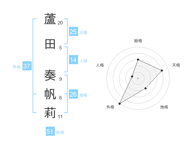 蘆田 奏帆莉さんの総格は51画の3点!