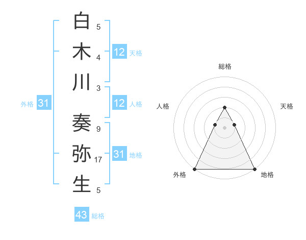 白木川 奏弥生さんを姓名の画数から五運を鑑定