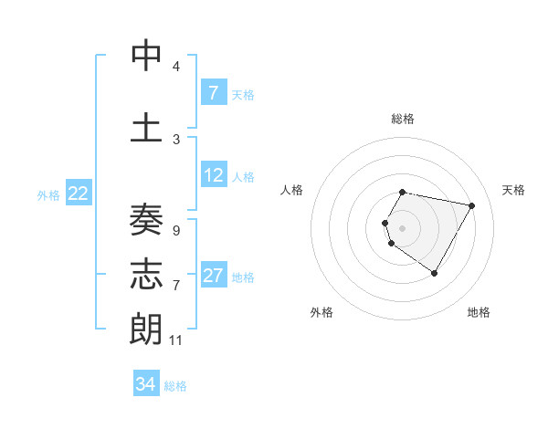 中土 奏志朗さんを姓名の画数から五運を鑑定