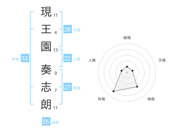 現王園 奏志朗さんを姓名の画数から五運を鑑定