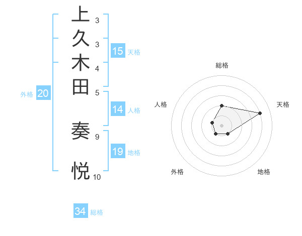 上久木田 奏悦さんを姓名の画数から五運を鑑定