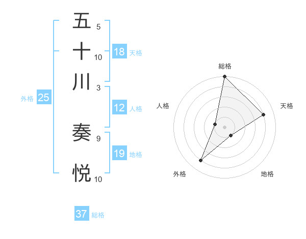 五十川 奏悦さんを姓名の画数から五運を鑑定