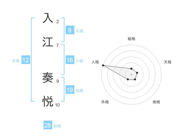 入江 奏悦さんの外格は12画の1点!