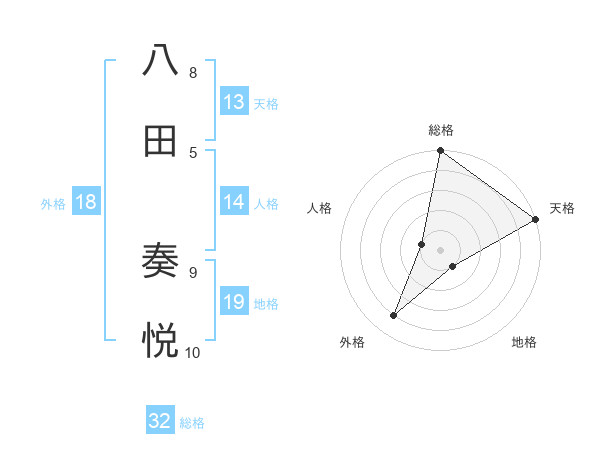 八田 奏悦さんを姓名の画数から五運を鑑定