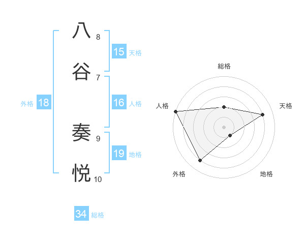 八谷 奏悦さんの天格は15画の4点!