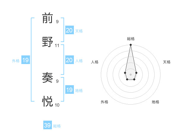 前野 奏悦さんの総格は39画の5点