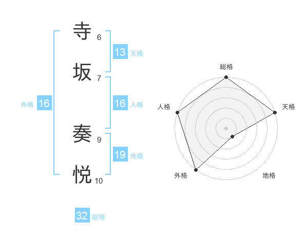 寺坂 奏悦さんを姓名の画数から五運を鑑定