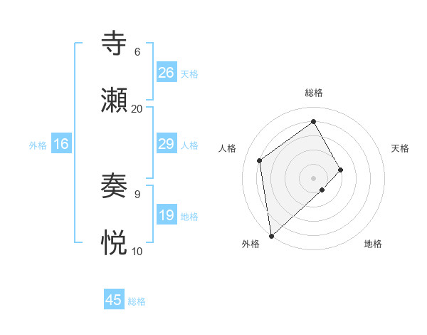 寺瀬 奏悦さんの総格は45画の4点!