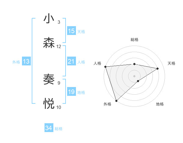 小森 奏悦さんの人格は21画の5点!