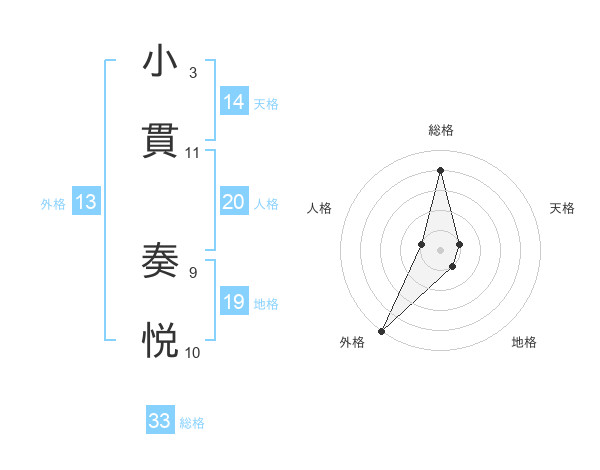 小貫 奏悦さんの総格は33画の4点!