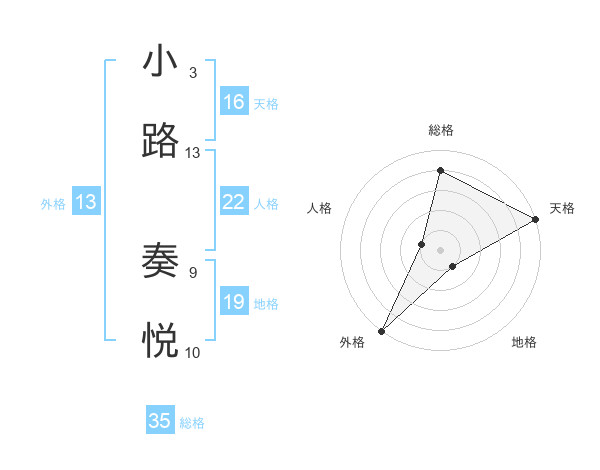 小路 奏悦さんの外格は13画の5点!