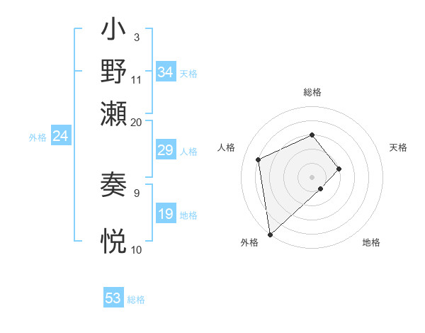 小野瀬 奏悦さんを姓名の画数から五運を鑑定