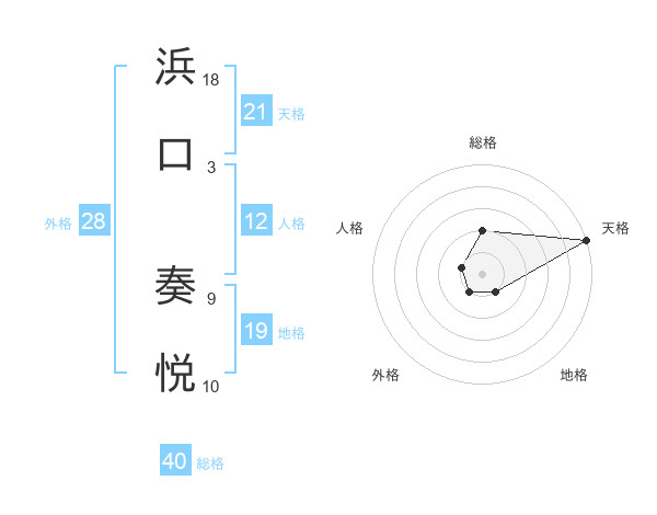 浜口 奏悦さんを姓名の画数から五運を鑑定