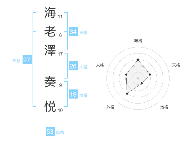 海老澤 奏悦さんの総格は53画の3点!