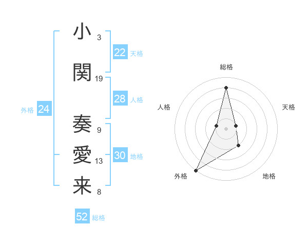 小関 奏愛来さんを姓名の画数から五運を鑑定