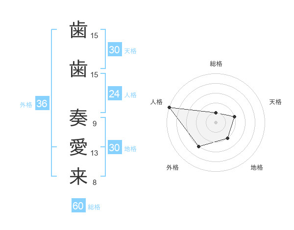 歯歯 奏愛来さんを姓名の画数から五運を鑑定