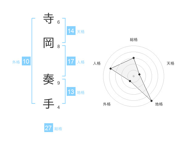 寺岡 奏手さんの人格は17画の4点!