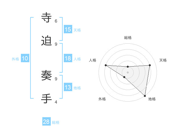 寺迫 奏手さんの天格は15画の4点!