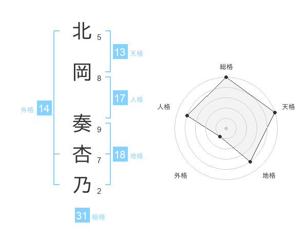 北岡 奏杏乃さんを姓名の画数から五運を鑑定