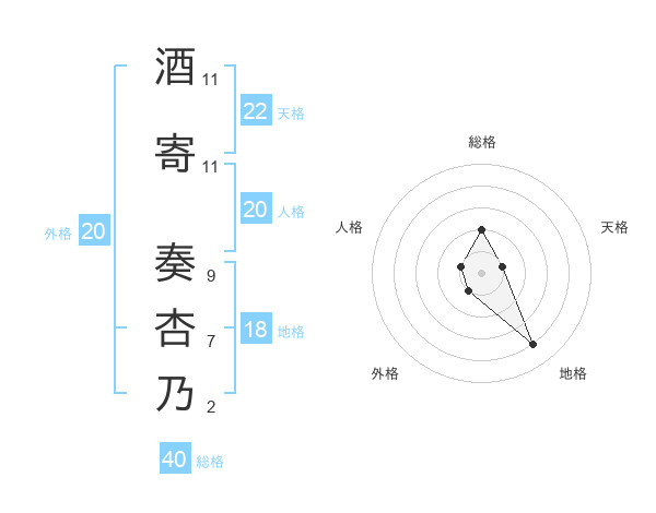 酒寄 奏杏乃さんを姓名の画数から五運を鑑定