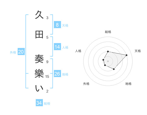 久田 奏樂いさんを姓名の画数から五運を鑑定